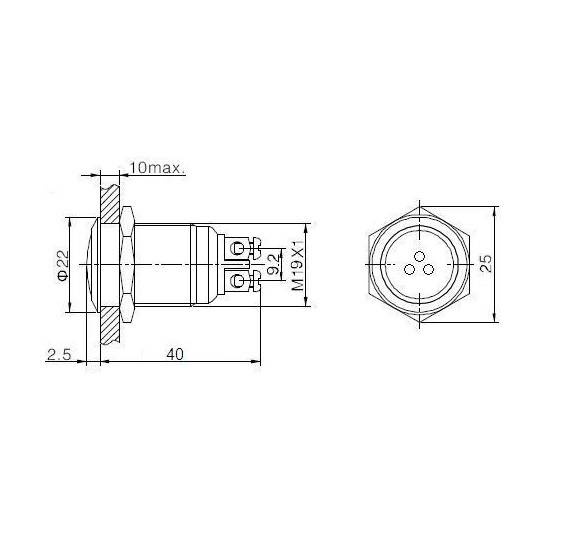 - Kontrolka metalowa LED 22mm 12V DC z buzzerem