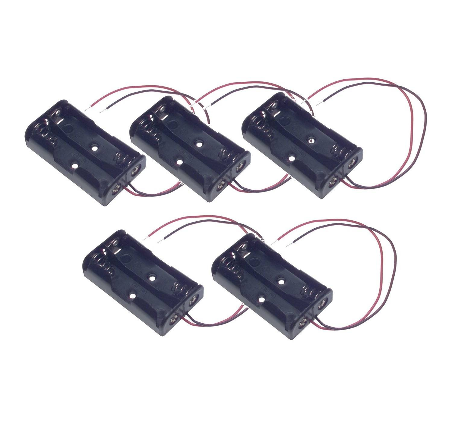 Zestaw 5 koszyków na 2 baterie AA (LR6) z wyprowadzonymi przewodami.