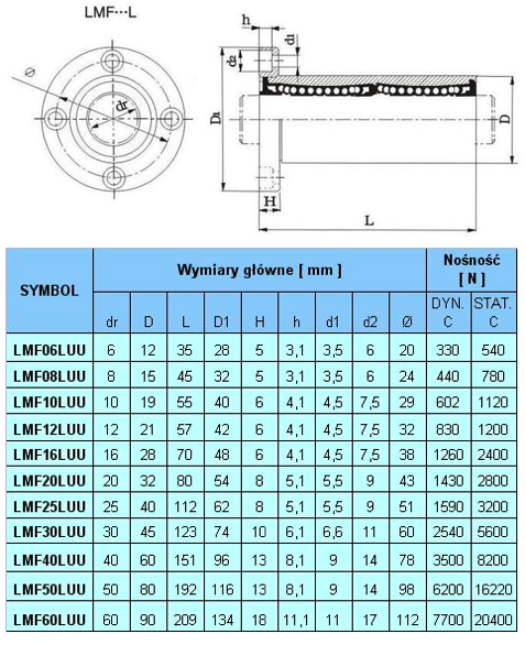 Trwałe, wysokiej jakości łożysko liniowe przedłużane z okrągłym kołnierzem LMF40LUU.