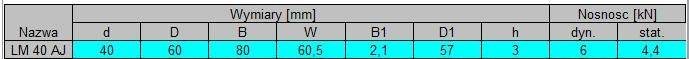 Łożysko liniowe uszczelnione regulowane LM 40 AJ