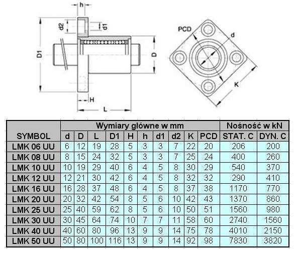 - Łożysko liniowe z kołnierzem kwadratowym fi 35mm LMK 35 UU druk CNC 3D