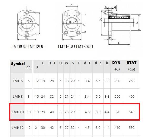 Łożysko liniowe z prostokatnym kołnierzem LMT10UU LMH10UU