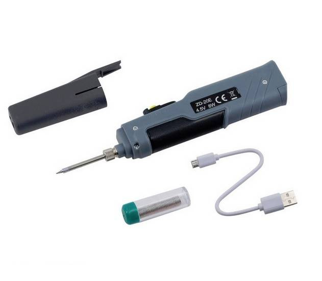 Lutownica bezprzewodowa o mocy 8W zasilana z 3 baterii 1.5V typu AA lub akumulatorów 1.2V typu AA. Posiada wbudowany port USB do ładowania akumulatorów. Lutownica posiada cienki, stożkowy grot (średnica końcówki ok 1mm) dzięki któremu możemy lutować nawet drobne elementy. Kolba rozgrzewa się do temperatury roboczej w czesie ok 15 sekund. W lutownicy została zainstalowana kontrolka informująca o nagrzewaniu grota. W pełni naladowane akumulatory pozwalają na ok. 90min pracy.