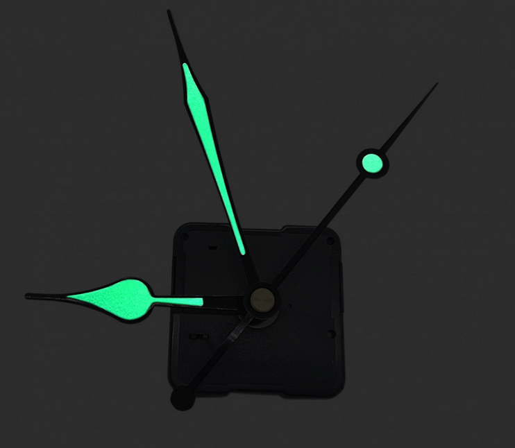 Wskazówki posiadają warstwę fluorescencyjną, dzięki czemu "świecą w ciemności".