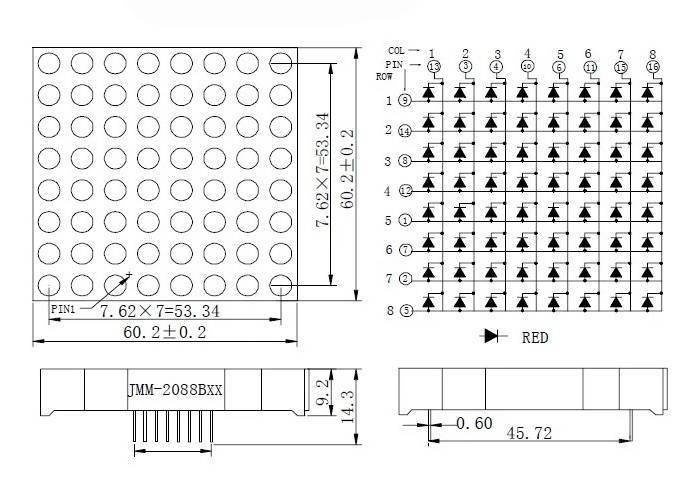 Moduł matrycy LED 8x8 czerwona 60x60mm wspólna anoda