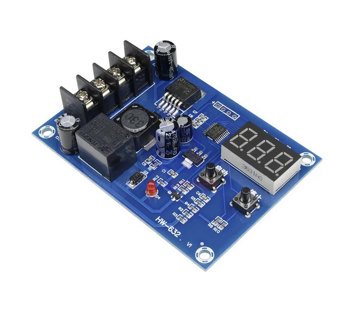 Moduł umożliwia automatyczne sterowanie ładowarką. Gdy napięcie akumulatora spadnie poniżej ustawionego zakresu to moduł włączy ładowarkę a gdy napięcie akumulatora będzie wynosić powyżej ustawionego limitu to moduł ją wyłączy.