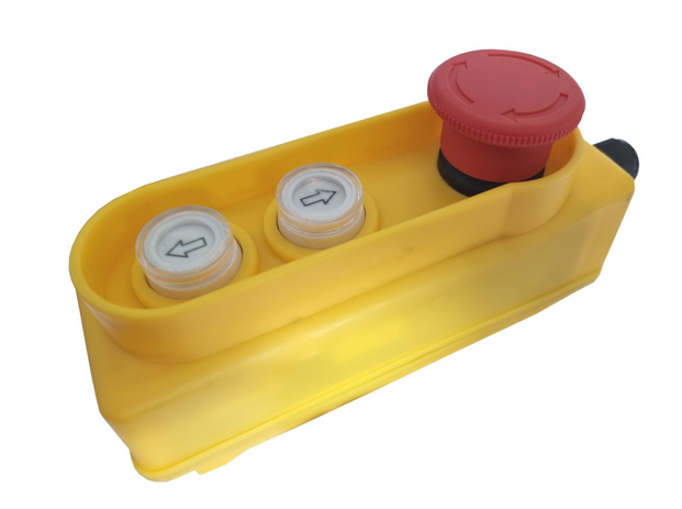 Przełącznik/pilot dwu funkcyjny góra-dół z dodatkowym przyciskiem bezpieczeństwa tzw. "grzybkiem".