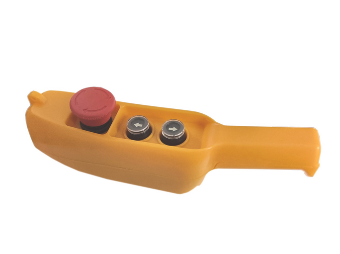 Przełącznik/pilot dwu funkcyjny góra-dół z dodatkowym przyciskiem bezpieczeństwa tzw. "grzybkiem". Posiada wytrzymałą obudowę. Może być wykorzystywany do sterowania np. windami załadowczymi, wyciągarkami, kiprami, pługami, dźwigami HDS itp.