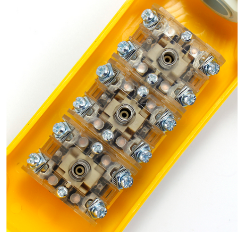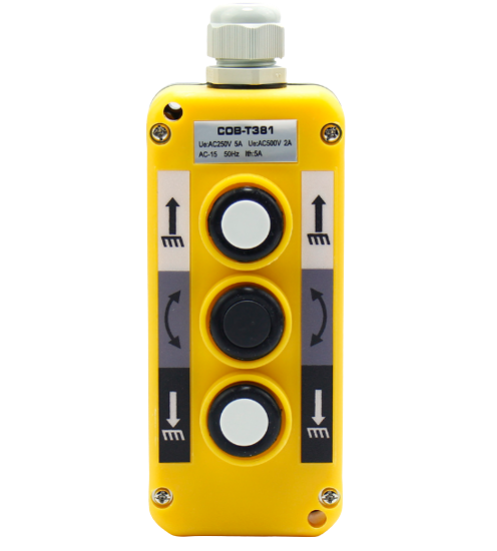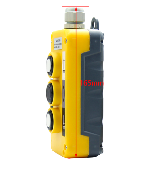 Przełącznik/pilot trzy przyciskowy. Posiada wytrzymałą obudowę, może być wykorzystywany do sterowania np. dźwigami, wyciągarkami, dźwigami HDS, windami itp.