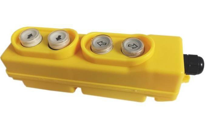 Przełącznik/pilot cztero funkcyjny góra-dół, lewo-prawo. Posiada wytrzymałą obudowę. Może być wykorzystywany do sterowania np. windami załadowczymi, wyciągarkami, kiprami, pługami, dźwigami HDS itp.