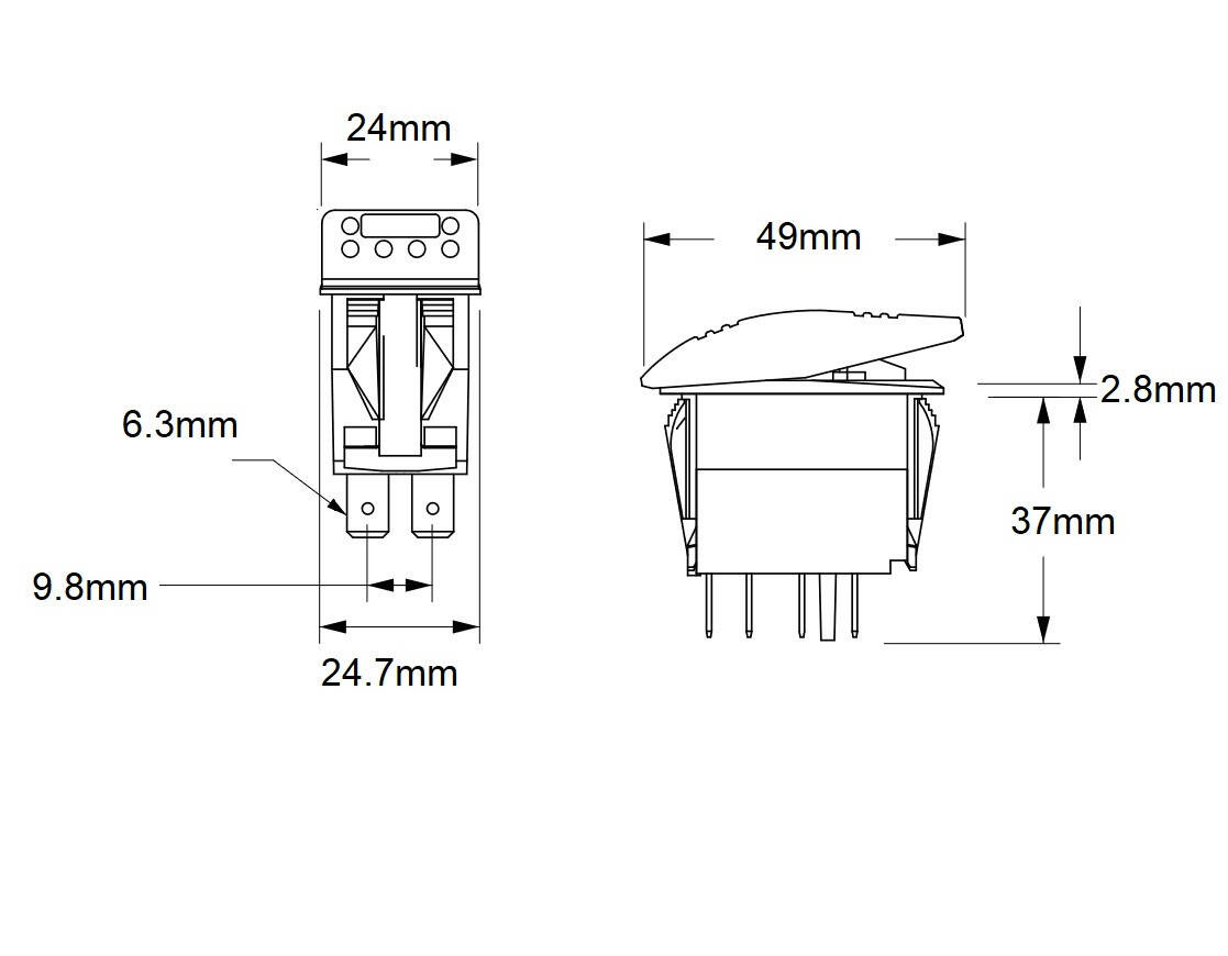 Przełącznik samochodowy typu Carling stosowany m.in w samochodach osobowych, ciężarowych, off roadzie, łodziach, kamperach, w przyczepach kempingowych.