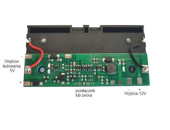 - Przetwornica napięcia 2x ogniwo 18650 3.7V na 12V