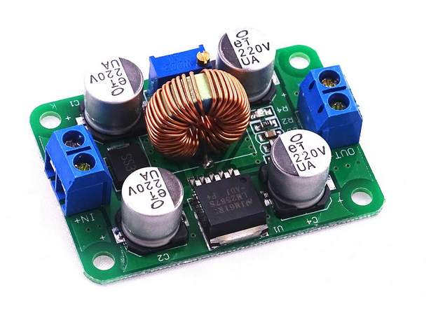 Przetwornica podwyższa napięcie wejściowe z zakresu 3.5V - 30V do napięcia wyjściowego regulowanego za pomocą potencjometru z zakresu 5V - 30V.