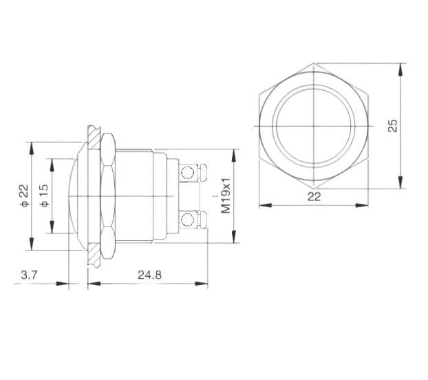 - Przycisk wandaloodporny monostabilny 2A 250V klawisz wypukły