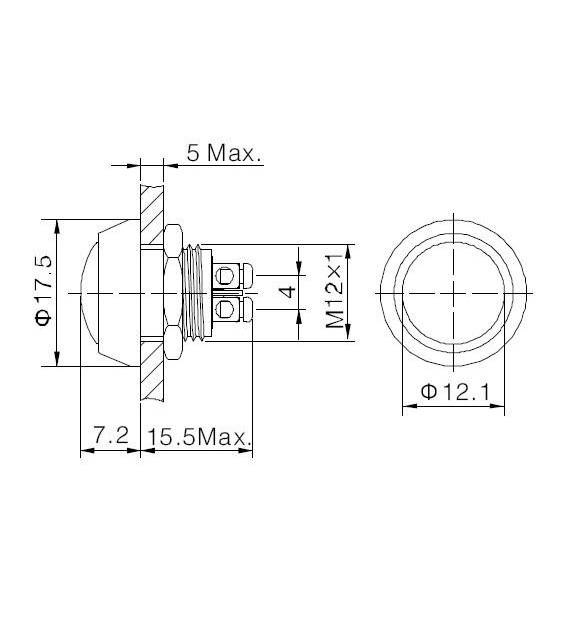 - Przycisk wandaloodporny, monostabilny 2A 250V, klawisz wypukły srebrny