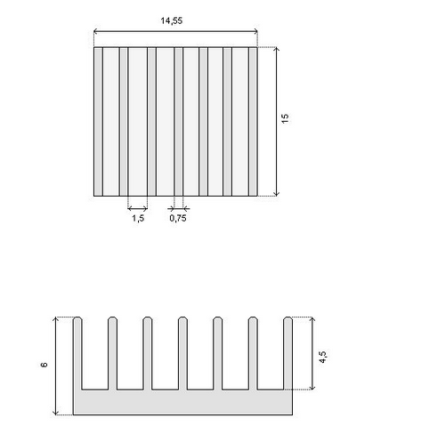 Radiator aluminiowy o wymiarach 15x6x14,5mm