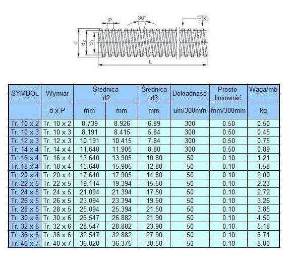 Śruba trapezowa o średnicy 8mm ze skokiem gwintu 2mm