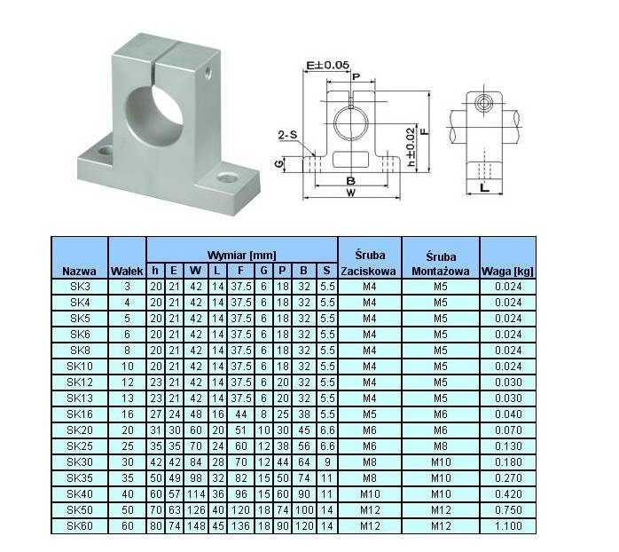 Wspornik końcowy wałka liniowego SK20 na wałek 20mm 3D CNC