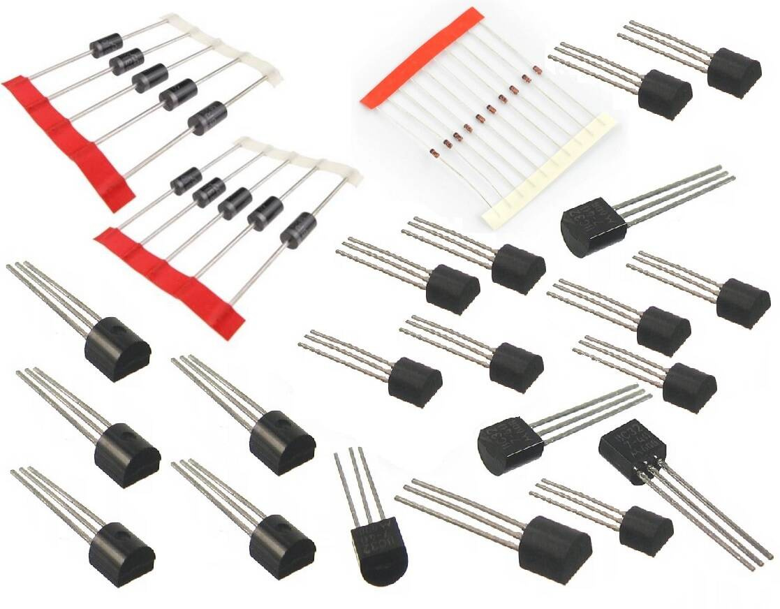 ➡️ Opis: Tranzystory to kluczowe elementy półprzewodnikowe, które służą do wzmacniania sygnałów lub przełączania prądów.