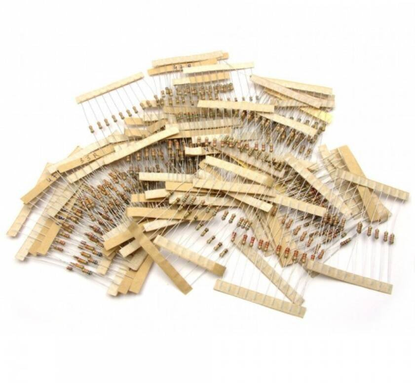 - Zestaw rezystorów 160szt. (16 wartości po 10szt.): 10R, 22R, 47R, 100R, 220R, 470R, 1k, 2.2k, 4.7k, 10k, 22k, 47k, 100k, 220k, 470k, 1M