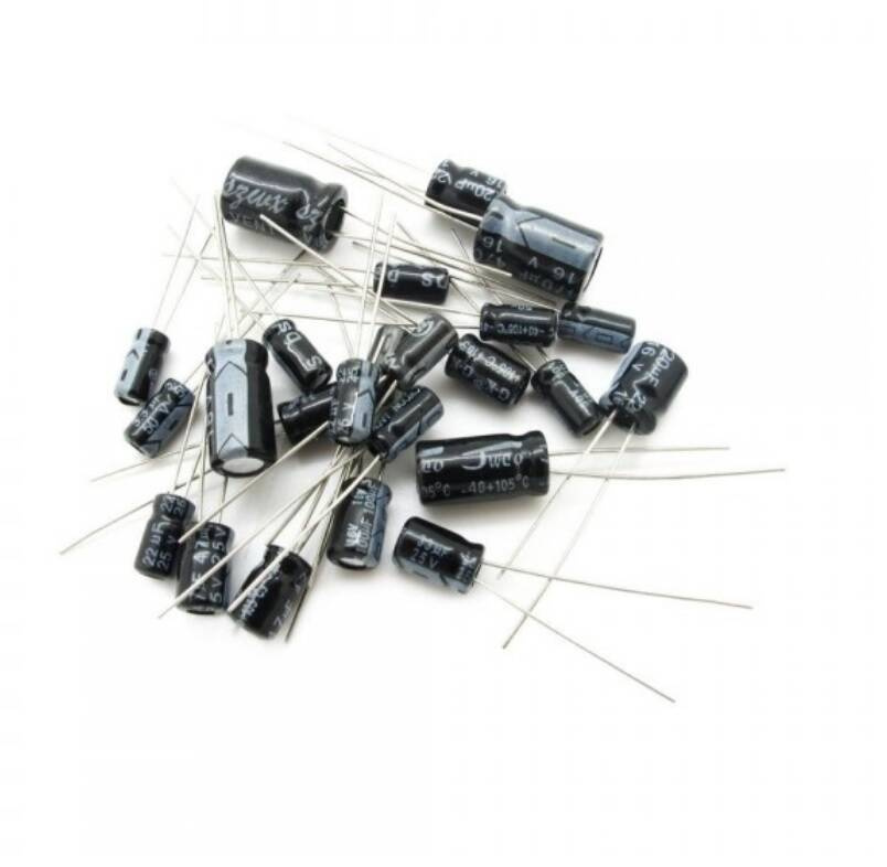- Zestaw 120szt. kondensatorów elektrolitycznych (12 wartości po 10szt.): 0.22uF/50V; 0,47uF/50V; 1uf/50V; 2,2uF/50V; 4,7uF/16V; 10uF/25V; 22uF/16V; 33uF/16V; 47uF/16V; 100uF/16V; 220uF/16V; 470uF/16V