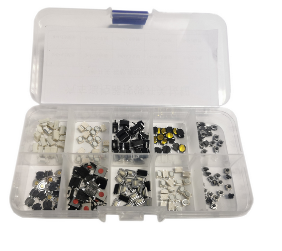 Zestaw popularnych przycisków tact switch stosowanych w pilotach, urządzeniach itp.