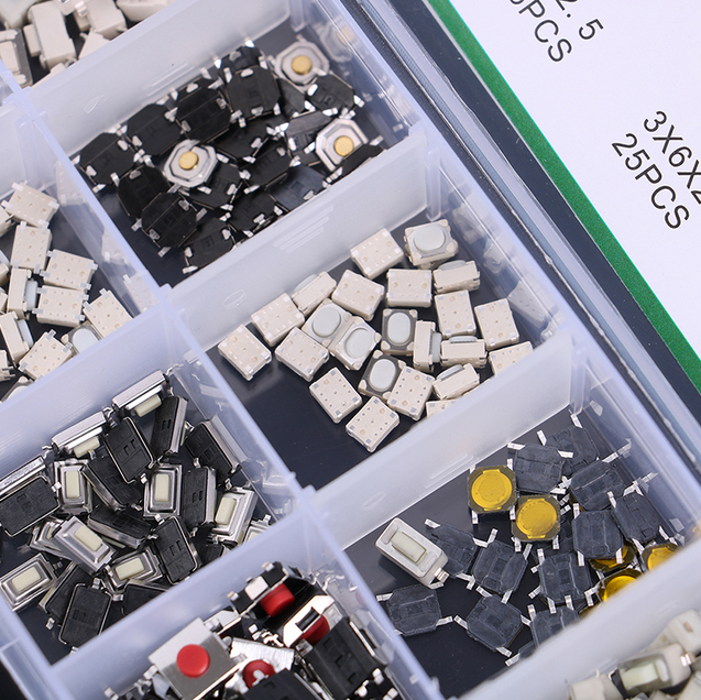 Zestaw popularnych przycisków tact switch SMD stosowanych w pilotach, urządzeniach itp.