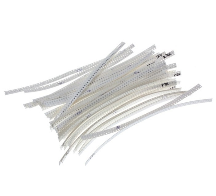 Zestaw 80 wartości rezystorów SMD w obudowie 0603, używanych przez każdego elektronika. Rezystory mają  czytelnie opisaną rezystancję.