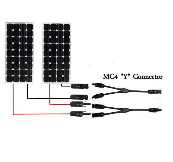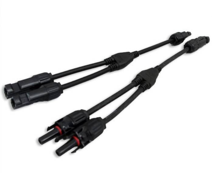 Podwójne konektory MC4 umożliwiają równoległe łączenie paneli słonecznych.